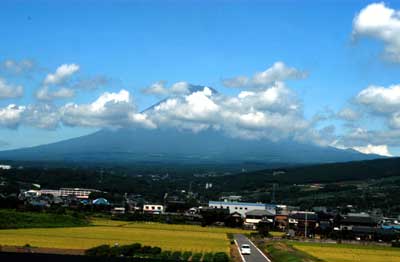 雲の帽子をかぶった富士山……
