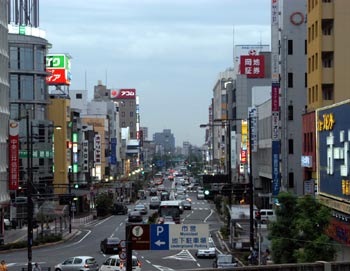 . <夕暮れ時の尾張一宮駅前。JRのホームから>