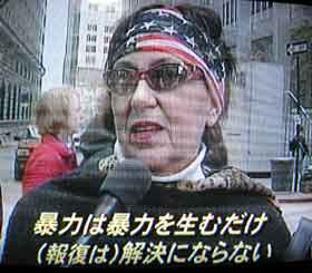 <アメリカにも、米政府の報復戦争に批判的な人々もいます(昨年10月のテレビ画面から)>