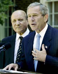<米大統領は9月10日、アフガン大使館で会見し国連演説の内容を明らかにした(2002年9月10日、ロイター)Yahoo!写真ニュースより>
