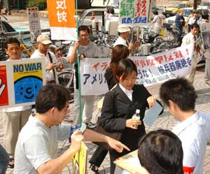 <上の写真は「イラク攻撃に反対しましょう」「有事法制許せません」の宣伝・署名=11日、東京・新宿駅西口。「赤旗」HP>