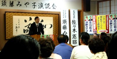 私は、3カ所の演説会を駆け回りました。それぞれ100人の参加者で盛り上がりました。私の持ち時間は30分です。