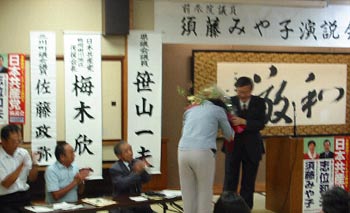 私は、鈴木宗男議員の疑惑追及の体験をまじえながら、清潔な日本共産党が1人当選すれば、議案提案権が確保できること、とくに農家の代表として大活躍されてきた須藤さんを! と訴えました。