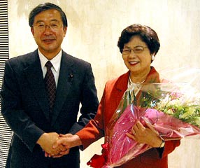 須藤美也子さんと、がっちり握手!「がんばりましょう」