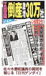 この質問を、当時の夕刊紙「日刊ゲンダイ」(01年5月31日付)が、「大手銀行の不良債権処理で中小企業は断末魔」「倒産30万社、失業者150万人の戦慄(せんりつ)データ」「救われるのは大企業だけではたまらない」と、大きくとりあげました。