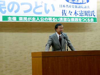 私は、ムネオ疑惑追及の体験を中心にお話をさせていただきました。腐敗汚職をなくすには、政官業癒着の打破こそ必要。そのために力を合わせましょうと訴えました。