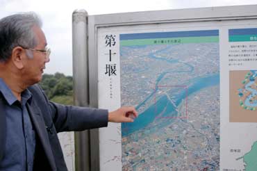 案内していただいたのは、党徳島県委員長の山本茂喜さんと党徳島市議の塀本信之さんでした。天気は曇り。可動堰の建設を食い止めた住民の息吹が伝わってくるようでした。