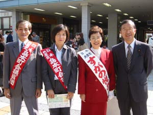 演説が終わって、すがの悦子さん、島本町会議員の皆さんといっしょにパチリ!
