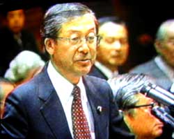 そういう点から見ると、工事がおこなわれた時期に献金が集中していることが分かります。95年〜97年の3年だけで、関連の元請・下請会社18社から、表に出ただけでもじつに1900万円の献金を受けている。しかも、落札直後の96年に急増している。きわめて異常だ。これは、秘書官の問題ではない、あなた自身の問題だ。口利きの見返りと言われても、しようがないではないか。