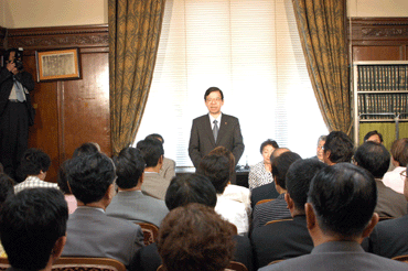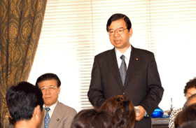 さらに、日本共産党が、国会論戦でも野党外交でも、国民運動と力を合わせて国連憲章と憲法をまもりぬく論戦と行動を精力的に進めたことは、将来に生きる値打ちを持っているとのべるとともに、当面、イラク派兵を具体化させないたたかいはいよいよ重大、ともに力をつくそうと呼びかけました。