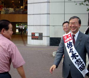 四日市駅前では、街頭宣伝をおこないました。私は、ムネオハウス追及の体験をお話ししながら政治腐敗を根絶すること、これ以上の増税や負担増に反対し財政構造の改革をすすめること、自衛隊の海外派兵をくい止めること、そのためにも日本共産党の躍進をと訴えました。