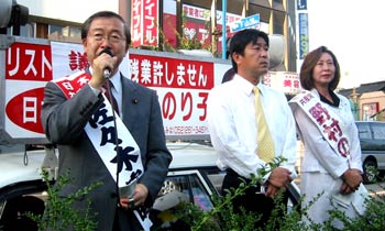 地元小選挙区候補の野村のり子さん、岡崎市議会議員の柳田孝二さん、鈴木まさ子さんと、いっしょに行動しました。