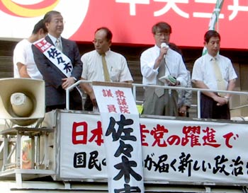 この街頭演説会に、暑いなかわざわざ参加していただいた方々とともに、通りすがりで立ち止まって聞いてくださる方々も加わって、盛り上がりました。