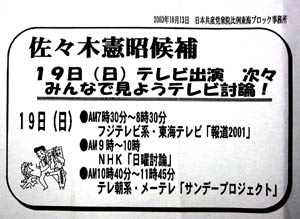 10時40分〜テレビ朝日「サンデープロジェクト」