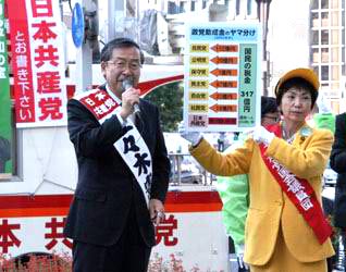 公示前の最後の日曜日とあって、他党も必死です。賑やかなところをねらって宣伝行動を強めています。まけるわけにはいきません。