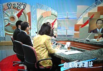 な〜んだ、NHK出演なんて自民党にとってはその程度の位置づけなんだと思いました。少し遅れてあらわれた公明の北側氏は、「寂しいな〜。いままで自民、保守と3人いたのに」なんて言ってました。
