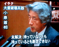 小泉総理は、「持っているとも、持っていないとも断定できない。未解決だ」と答えざるを得ず、イラク戦争を支持した根拠が崩壊したことが明確になりました。