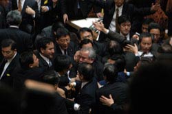 与党は、夜の11時過ぎに衆院本会議に緊急上程して衆院を通過させました。