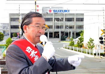 昨日の涼しい北海道とから、今日は暑い静岡県浜松市に移動し数カ所で訴えました。