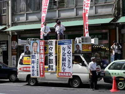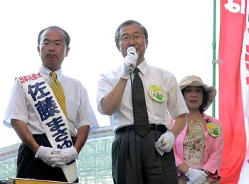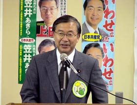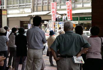 福井市では、選挙区の候補者カーと比例区の笠井カーがドッキング。訴えをおこないました。はじめは、30人位くらいでしたが、話し始めるとだんだん増えて50人くらいになりました。うの邦弘候補とともに訴えました。