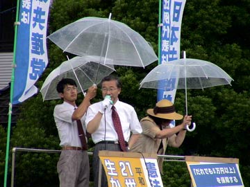 しかし、名古屋発・東京行きの「こだま」だけが動いていたのです。それに乗り込んで豊橋まで行き、まだ雨の降っていない駅前で宣伝カーからお話をしました。