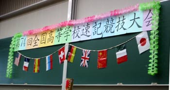 今日は、第74回全国高等学校速記競技大会がおこなわれました。団体優勝したのは、岐阜県立岐阜商業高校でした。個人優勝は、静岡県立浜松商業高校の女子高校生でした。