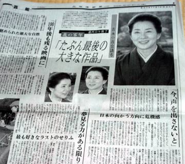 今日の「北海道新聞」の夕刊を見ていましたら、女優の吉永小百合さんのインタビューが載っていました。