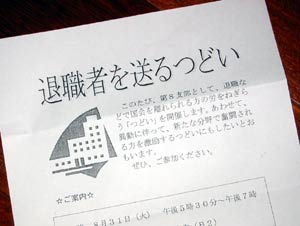 また、秘書の党支部が主催する退職者を送るつどいが開かれました。