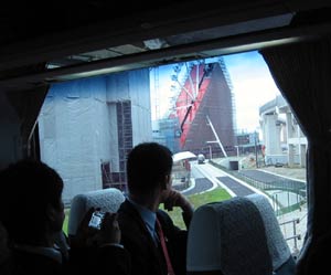 会場予定地に着くと、パビリオンをはじめ、さまざまな建物が次々と建設中です。ここでも、ゼネコン各社の名前が公然と掲げてありました。