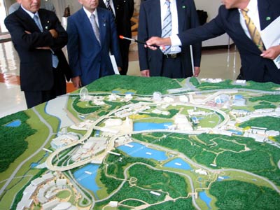 午前中、来年(3月25日〜9月25日)開催予定の「2005年日本国際博覧会」(愛知万博)の予定地、長久手町の会場を視察し説明を受けました。