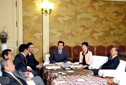 「政治とカネ」をめぐる疑惑、とりわけ自民党旧橋本派の献金隠し事件、年金、イラク問題、さらに沖縄での米軍ヘリ墜落事故、台風・集中豪雨、BSE検査基準見直しなど、問題は山積しています。<事前の3野党国対委員長会談(右端が私)>