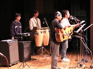 このバンドは、2年前から平和運動を続けているグループ「ピースメッセージ2002の会」のメンバーで、音楽好きな高校生、専門学校生、大学生、教諭などによって結成されました。