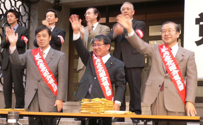 集会には、日本共産党、民主党、社民党の議員も参加しました。