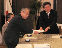 生活保護や国民健康保険、児童扶養手当、義務教育など、暮らしに必要な制度への国庫負担の削減は絶対にしないこと、所得税・住民税の増税をしないこと、介護保険料・利用料や国保税・料の値下げと減免をおこなうこと、生活扶助基準の引き下げをおこなわないことなどの要請を受け、ともに頑張る決意を伝えました。
