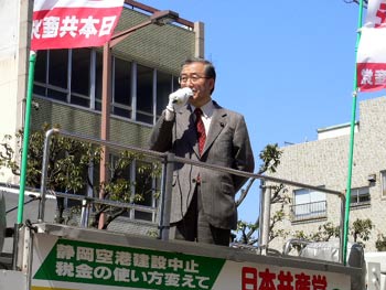 【05.03.26】静岡市の市議選応援に入り、街頭から市民に訴え