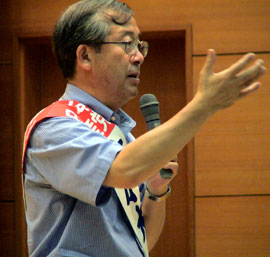 小泉さんは各地の演説で「改革を止めるな」と叫び、「郵政民営化」一本ヤリです。