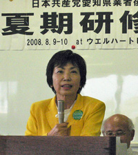 総選挙を見据えて開かれた日本共産党愛知県業者後援会夏期研修会に参加し、国政報告をおこないました。