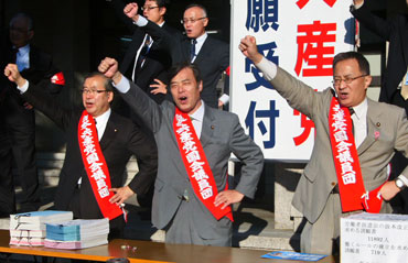 【08.11.13】生活危機突破中央総決起集会の国会請願デモを激励しました
