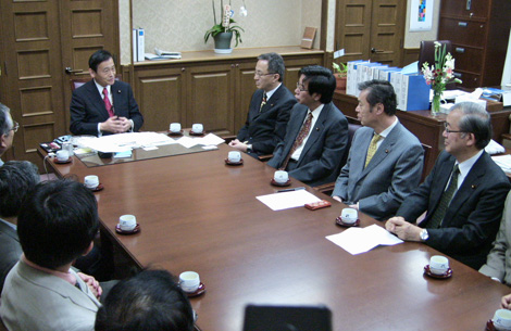 応対した末松信介政務官(参議院議員)は、「満額回答を勝ち取るよう頑張る」と約束しました。