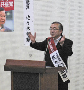 日本社会の貧困化が、深刻な実態をともなって広がっていることが訴えられ、日本共産党の躍進の必要性が切々と語られました。