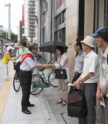 【09.07.20】名古屋市栄で街宣、4県業者後援会、名古屋市、半田市、可児市で演説会