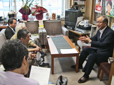 障がい者の生活と権利を守る全国連絡協議会、全日本視覚障害者協議会などと参政権の保障を求めて運動してきた「障害を持つ人の参政権保障連絡会」(代表・井上英夫氏)から、参議院選挙での参政権保障を要請されました。