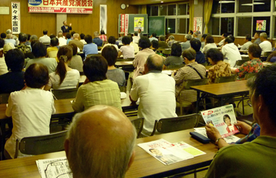 江南市の演説会では、100人の参加で、日本共産党を勝たせたいという意志が広がりました。