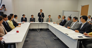 志位氏は「民主党の野田新代表が当選後、真っ先におこなったことは、自民、公明両党首にあって民自公3党合意への忠誠を誓ったことだ。自民、民主にひたすらすりより、連携を求め、大連立を乞い願う。こうした方向に民主党政権の延命の活路を見いだすという姿勢がはっきり示された」と批判しました。