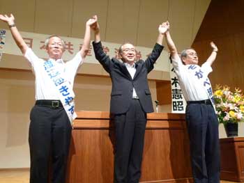 演説会場いっぱいの参加者で、熱気があふれました。
