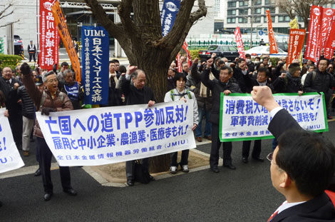 亡国への道TPP参加反対! 消費税大増税は許さないぞ! 軍事費削減、富裕層に課税を! 普天間基地は即時撤去を! 雇用と中小企業・農漁業・医療を守れ!……などのシュプレヒコールが、国会に響き渡りました。