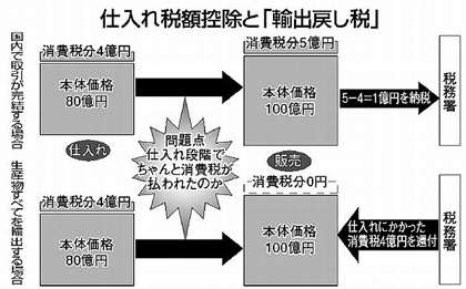 輸出に消費税を課さない場合、輸出業者は仕入れの際に払った消費税分が「損」になってしまいます。その分を税務署が輸出業者に還付する仕組みを、俗に「輸出戻し税」と呼んでいます。