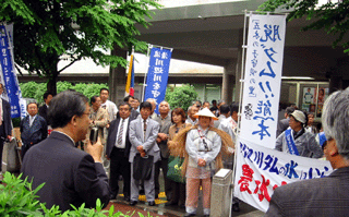 2003年5月19日、佐々木憲昭議員は、川辺川ダムについて、地元の皆さんとともに農林水産大臣に上告を断念する要請をおこないました。これは、公共事業チェックの会がセットしたものです。