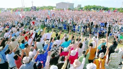 今回の「削除」問題の背景には、過去の侵略戦争を肯定し、日本軍の行為を美化する勢力の意向が反映しています。日本を再び「戦争をする国」にしてはいけません。本日のこの県民大会には、日本全国のそんな願いが込められています。大会の成功を力に、「沖縄の声」をさらに大きく広げ、検定意見の撤回と「集団自決」に関する記述の回復を勝ちとろうではありませんか。ご一緒に頑張りましょう。