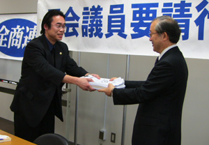【08.03.28】全国商工団体連合会・国会要請行動で署名受け取り